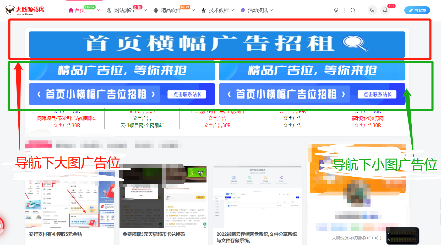 【④限4个/剩4个】 – 首页文章置顶广告位(尺寸:常规图片即可) 140R/月 双端显示 【查看位置】